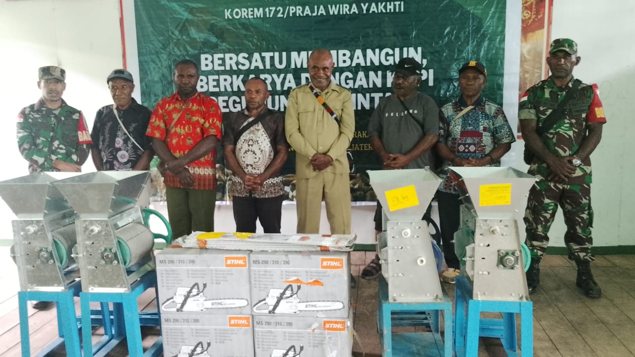 Korem 172 Pegunungan Bintang Serahkan Bantuan Usaha dan Sembako kepada Tokoh Adat di Oksibil