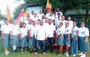 JAYAPURA–Ketua Panitia Perayaan HUT (52) Tahun SMA YPPK Teruna Bakti, Kris B Uropmabin,ST di dampingi teman Angkatannya menyerahkan cindera mata…