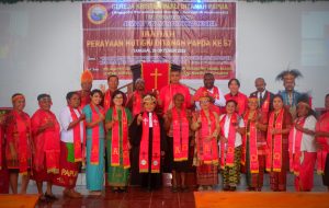 OKSIBIL—Ribuan jemaat mengikuti ibadah syukur peringatan Hari Ulang Tahun Gereja Kristen Injili (HUT GKI) di Tanah Papua ke 67 tahun di GKI…