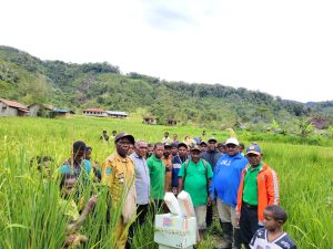 Ok Aom, (SWpapua.com) — Dalam upaya memperkuat ketahanan pangan dan meningkatkan produktivitas pertanian lokal, Dinas Pertanian Kabupaten Pegunungan Bintang bersama akademisi dari Universitas Okmin Papua (UOP) melakukan kunjungan kerja ke Kelompok Tani Padi Nematara yang berlokasi di Kampung Yumakot, Distrik Okaom, pada Sabtu (11/10/2025).