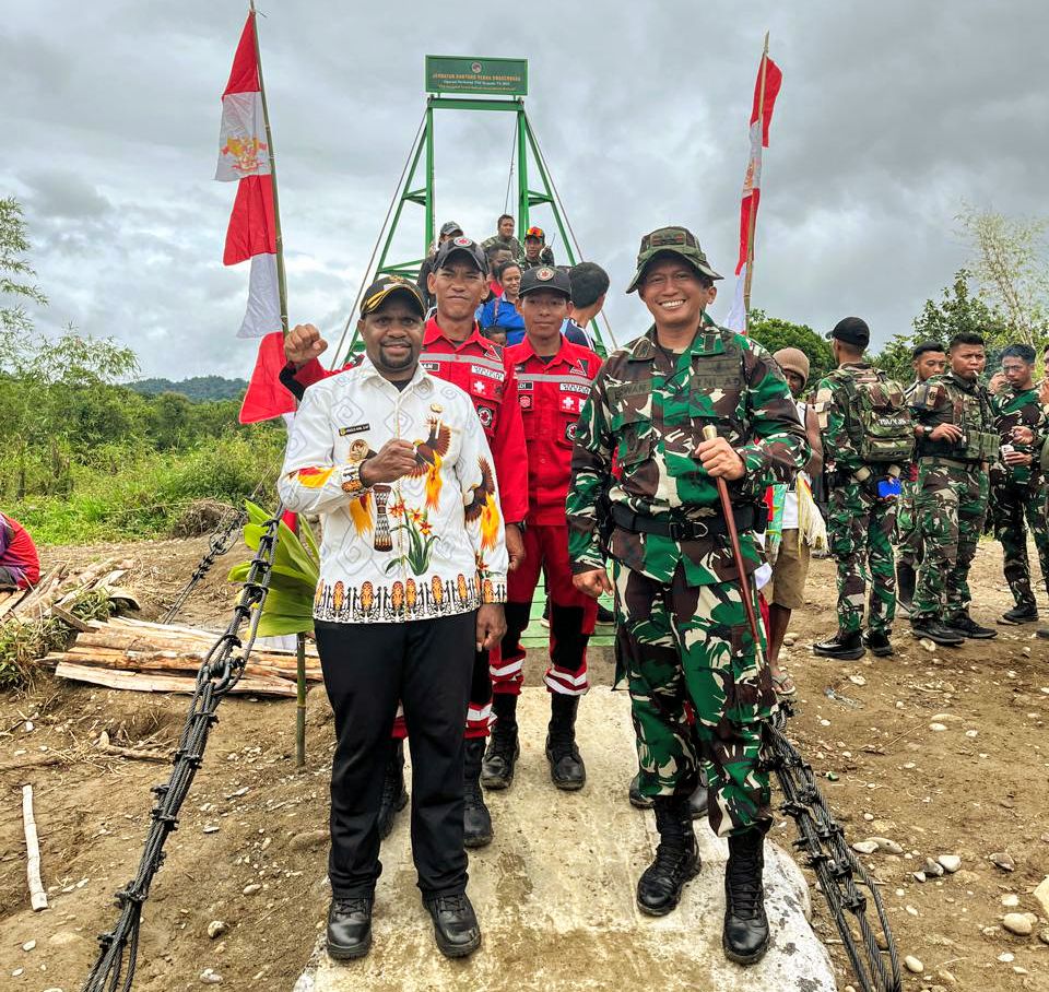 Oksibil, (SWpapua.com) – Pemerintah Daerah Kabupaten Pegunungan Bintang memberikan apresiasi tinggi kepada Satuan Tugas Pengamanan Perbatasan (Satgas Pamtas) Yonif 751/Vira Jaya Sakti yang telah bekerja cepat dalam membangun jembatan di Kali Iwur, Distrik Iwur, Papua Pegunungan.