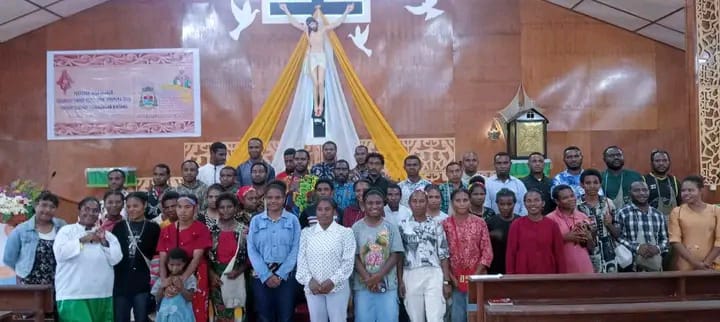 OKSIBIL (SWpapua.com) – Pastor Paroki Roh Kudus Mabilabol, Romo Yulius Daenang Wadja Pr, secara resmi mengukuhkan kepengurusan baru Orang Muda Katolik (OMK) Paroki Roh Kudus Mabilabol periode 2025–2028. Prosesi pengukuhan berlangsung khidmat di Gereja Paroki Roh Kudus Mabilabol, Oksibil, pada Minggu (21/9/2025).